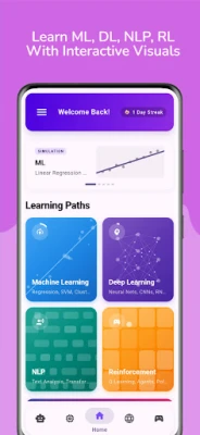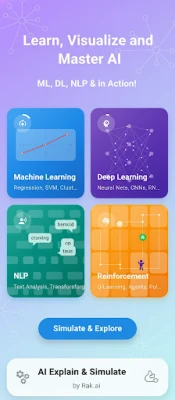 Odomknite potenciál umelú inteligenciu. Táto komplexná aplikácia vám prináša svet strojového učenia, hlbokého učenia, spracovania prirodzeného jazyka a učenia posilňovaním. Všetky kľúčové oblasti UI teraz objavíte pohodlne na jednom mieste.