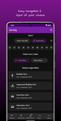 Ponorte sa do fascinujúceho sveta algoritmov a dátových štruktúr s vizuálnym nástrojom, ktorý premení abstraktné koncepty na názornú realitu. Ak vás zaujíma, ako efektívne usporiadať dáta, objavte dynamiku kľúčových triediacich algoritmov ako bublinkové triedenie (klasické aj vylepšené), vkladacie triedenie, triedenie výberom, rýchle triedenie, triedenie zlučovaním alebo triedenie haldou. Sledujte každý krok v reálnom čase, odhaľte ich fungovanie a analyzujte časovú zložitosť pre najlepší, najhorší a priemerný prípad, čím získate komplexný prehľad o ich výkone.