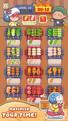 Vstúpte do sveta BBQ Sort: Skewer Match Puzzle! Triedte a spájajte rovnaké špízy, aby ste vyčistili gril a zdolali zábavné puzzle výzvy. Užite si návykové match-3 hranie s chutnou BBQ tematikou a očarujúcou grafikou. Ideálne pre rýchle herné prestávky!