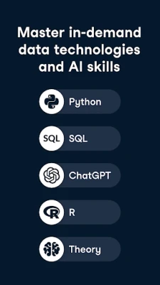 Odomknite svoj potenciál v dynamickom svete technológií s DataCamp. Táto aplikácia vám otvára dvere k ovládnutiu najžiadanejších programovacích jazykov ako Python, SQL a R, ako aj k prenikavým vedomostiam v oblasti umelej inteligencie (AI). Či už ste nováčik vo svete kódu alebo skúsený vývojár hľadajúci pokročilé techniky, DataCamp poskytuje komplexné interaktívne kurzy, ktoré sú navrhnuté tak, aby vás posunuli vpred. Získajte praktické zručnosti a získajte priemyselne uznávané certifikácie, ktoré vám pomôžu vyniknúť v dnešnej digitálnej ekonomike.