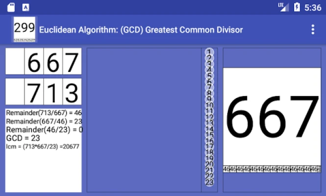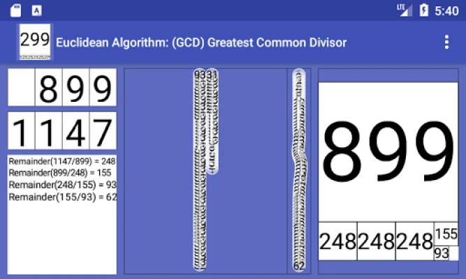 Greatest Common Divisor prináša rekurzívny Euklidov algoritmus priamo pred vaše oči. Sledujte, ako sa krok za krokom vykonáva výpočet, a pochopte logiku, ktorá stojí za jeho efektívnosťou. Pre pokročilejších užívateľov a študentov programovania je tu možnosť nahliadnuť do štruktúry rekurzívneho kódu, presne ako by ste ho našli v jazyku Java, čo pomáha demystifikovať zložité koncepty. Okrem toho, s prispením Joana Jareña (Creamat), vám aplikácia umožní ľahko odvodiť aj najmenší spoločný násobok (NSN) pomocou elegantného vzorca: nsn(a,b) = a*b / nsd(a,b). Vizuálne znázornenie je obohatené o hravý prvok – algoritmus sú vykonávané púpavami pochádzajúcimi z neďalekej Matematickej záhrady, čo prináša unikátny a zapamätateľný zážitok.