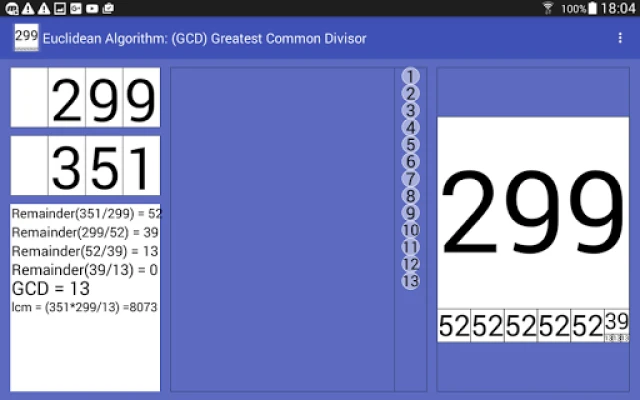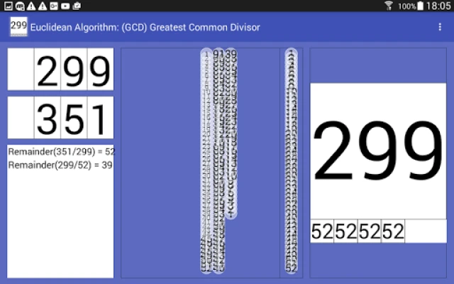 Aplikácia Euclidean Algorithm GCD prináša animované, dynamické a geometrické vizualizácie Euklidovho algoritmu. Pochopte Najväčší spoločný deliteľ (NSD) a jeho využitie pri zjednodušovaní zlomkov. Ukazuje rekurzívny algoritmus, odvodenie NSN a unikátnu vizualizáciu s púpavami pre hlbšie porozumenie matematiky.